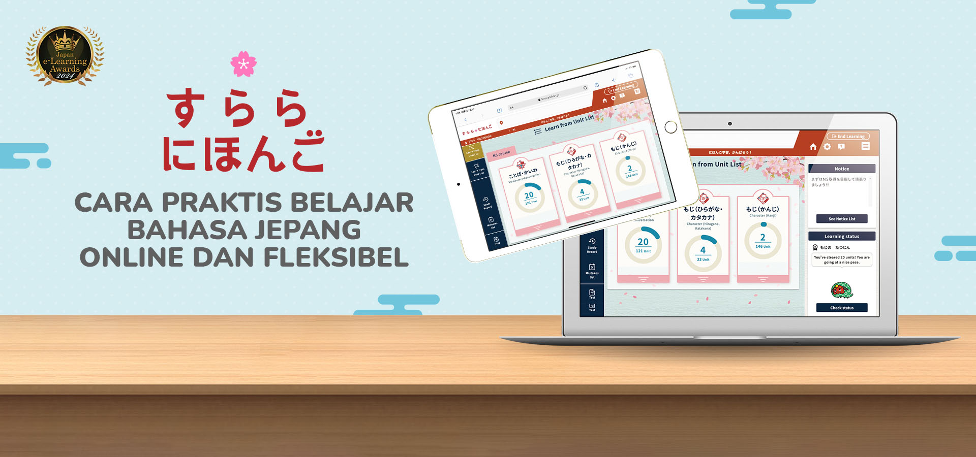 Dengan mempelajari kosakata dan percakapan secara berkesinambungan, Anda dapat mengembangkan kemampuan berbahasa Jepang secara lebih efektif dan efisien.
